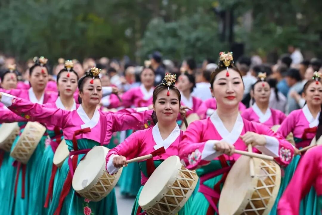 吉林藝術(shù)學(xué)院的紅旗袍方陣用恰恰舞步演繹《青春拉丁》,還有朝鮮族《鼓舞新時代》、蒙古族《白馬踏弦》等民族藝術(shù)精彩呈現(xiàn),形成跨越時空的藝術(shù)矩陣