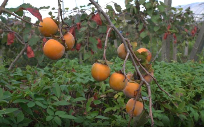 此外,園內(nèi)的200多棵柿子樹(shù)也換上了金黃的“外衣”。園內(nèi)種有黑糖柿子、火晶柿子和富平尖柿3個(gè)品種。張國(guó)華說(shuō):“今年的柿子品相都很不錯(cuò),黑糖柿子果皮是橙色的,皮薄肉厚,口感脆甜;火晶柿子顏色紅得耀眼,像火球一樣,又晶瑩透亮如水晶,沒(méi)有絲也沒(méi)有核,汁水豐富;富平尖柿果實(shí)個(gè)頭大,呈心臟形或紡錘形,軟了之后是橙紅色,既適合鮮食也適合制餅,單果重量可達(dá)3兩左右。”