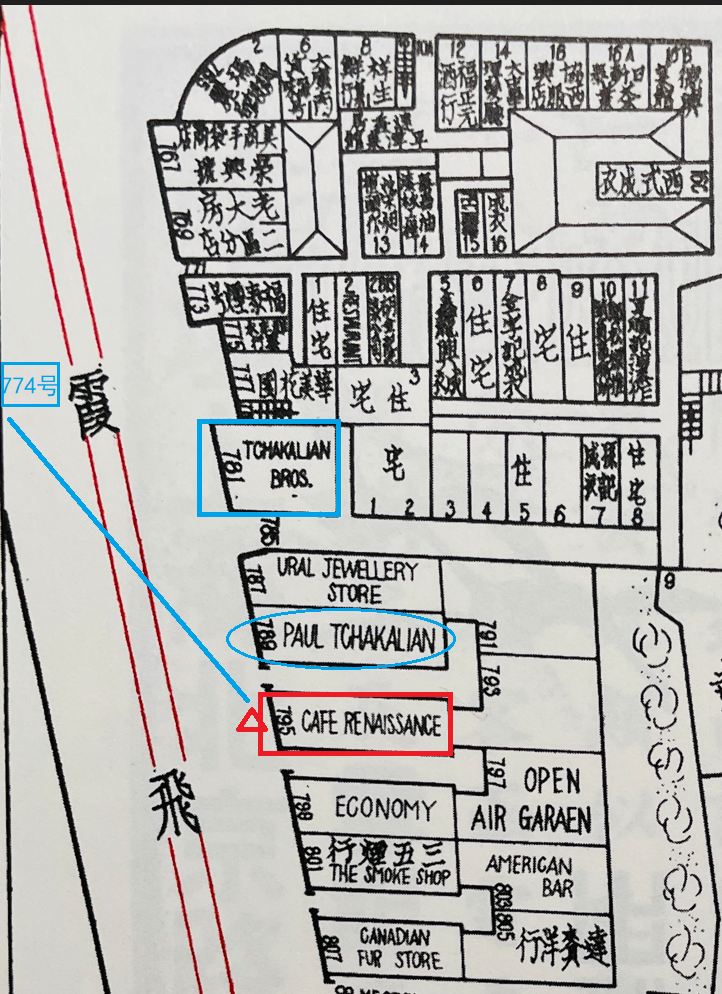 從二三十年代店址變化可見(jiàn),文藝復(fù)興和老大昌(Tchakalian家族)、《上海柴拉報(bào)》聯(lián)系密切(可能還包括曾開(kāi)在774號(hào)底樓的信濟(jì)銀行)。1932年底,文藝復(fù)興債務(wù)清理,未影響營(yíng)業(yè),1930年代早期報(bào)道顯示其一直營(yíng)業(yè)且生意好。清理中提到公司所有人有Pierre Tchakalian和Basile Pavlo,Pavlo家族是1930年代中期后老板和經(jīng)營(yíng)者,Tchkalian家族可能是或曾是重要股東。