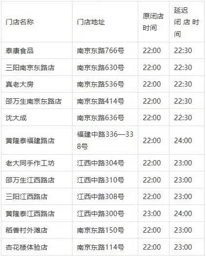 7月下旬至10月8日,黃浦區(qū)新世界集團(tuán)旗下部分位于南京路步行街的老字號(hào)門店試點(diǎn)延長營業(yè)時(shí)間。澎湃新聞?dòng)浾呤崂戆l(fā)現(xiàn),以南京東路地鐵站為界,南京路步行街往西,泰康、三陽、真老大房、邵萬生、沈大成等老字號(hào)門店,延長營業(yè)時(shí)間半小時(shí)至22時(shí)30分打烊;南京路步行街東拓段上的稻香村、杏花樓,以及與之相交的江西中路上部分老字號(hào)門店,延長營業(yè)時(shí)間1小時(shí)至23時(shí)打烊;此外,黃隆泰福建路店和江西路店,分別延長2小時(shí)和1小時(shí),至24時(shí)打烊。
