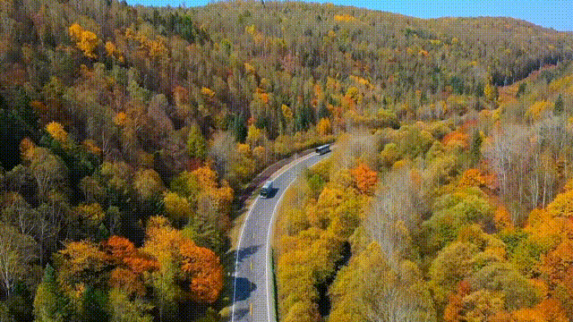 秋日的國道像一條金色絲帶,穿梭在五彩斑斕的山林間,隨手一拍都是能當(dāng)屏保的絕美畫面,一路皆是驚喜。