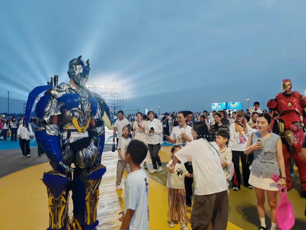 舞臺表演區(qū)營造出文藝魅力與足球激情相互交融的獨特氛圍。每天都有藝術精品和潮流樂隊的精彩表演,而在10月7日的“蘇超狂歡之夜”,這里作為“蘇超”第二現(xiàn)場之一,在直播南通隊與淮安隊淘汰賽的同時,還會為球迷帶來別具特色的“蘇超”夜嗨主題活動。每晚不同特色的主題巡游將打造出潮流新場景,千架無人機秀每晚都會與觀眾見面,在10月6日中秋之夜,還會額外增加一次表演,讓游客在光影變幻中度過一個難忘的佳節(jié)。