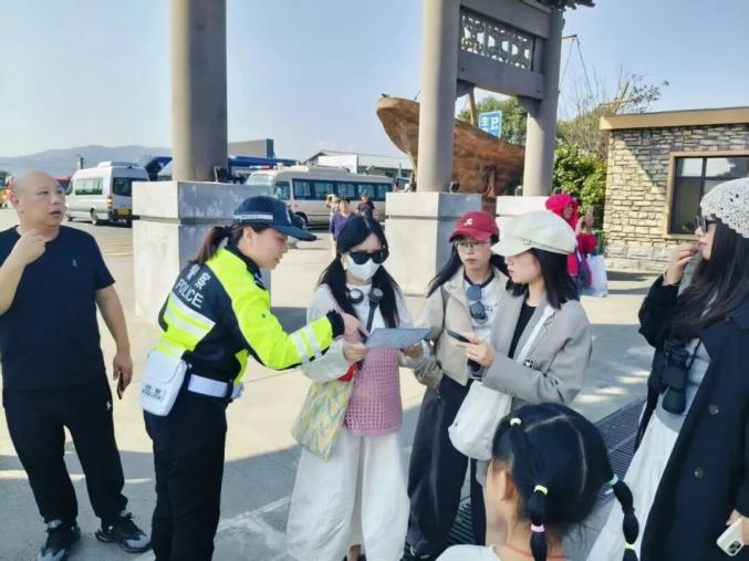 執(zhí)勤交警通過(guò)多種形式普及交通安全知識(shí),強(qiáng)調(diào)假期出行注意事項(xiàng),引導(dǎo)市民樹(shù)立文明交通理念。