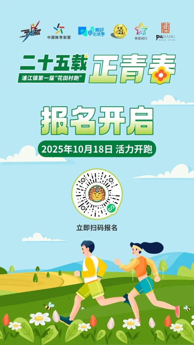親愛的跑友們,10月2日12:00,“二十五載正青春”——浦江鎮(zhèn)第一屆“花田村跑”開啟報(bào)名啦!