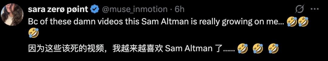 就連奧特曼本人都在發(fā)帖稱,觀看動(dòng)態(tài)中自己的表情包,感覺并沒有想象中奇怪。也有網(wǎng)友表示,看了這些奇怪的AI視頻,反倒更喜歡奧特曼了。