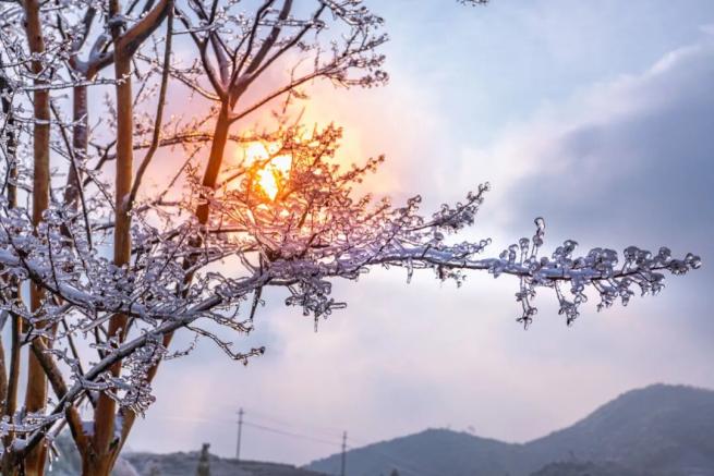 冬日里一場不期而遇的霧凇,給山巒披了一層素衣,林木褪盡鉛華,冰晶包裹萬物,時間仿佛在此停駐。
