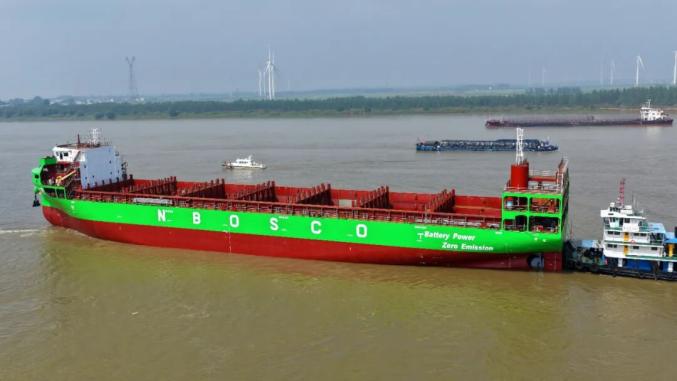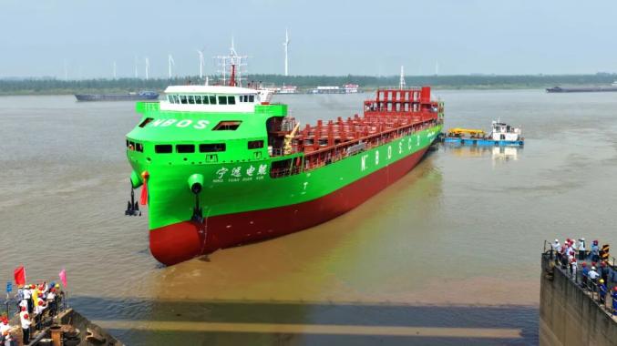 9月29日,我國(guó)航運(yùn)業(yè)取得歷史性突破。江西江新造船有限公司為寧波遠(yuǎn)洋運(yùn)輸股份有限公司建造的“740TEU純電動(dòng)敞口集裝箱船”,在江西湖口成功下水。此船是全球最大、國(guó)內(nèi)首制的萬(wàn)噸級(jí)純電動(dòng)智能海船,它的下水意味著我國(guó)沿海集裝箱運(yùn)輸正式進(jìn)入零排放、純電動(dòng)時(shí)代。