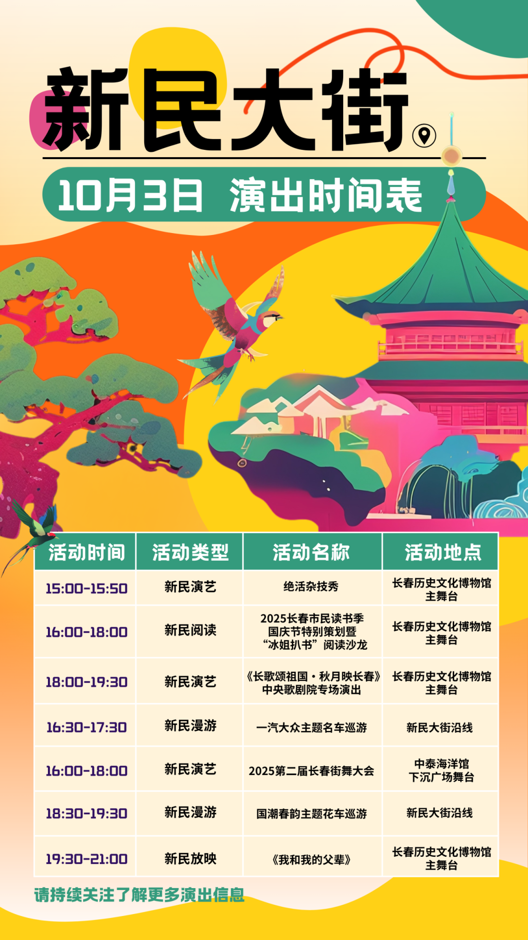 假期第三天(10月3日),長春國際航空博覽城和新民大街的演出節(jié)目單又來咯~