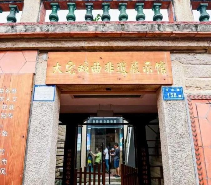 大宅社區(qū)還有非遺戲曲展示館,展館不大,卻藏著閩南戲曲的小片段。館內(nèi)有高甲戲、歌仔戲的服飾、樂(lè)器、劇本陳列。坐下來(lái)聽(tīng)一曲鄉(xiāng)音,再穿戴戲劇服裝打個(gè)卡,體驗(yàn)一把閩南藝術(shù)的魅力,讓?xiě)蚯幕谶@里得以活化傳承。