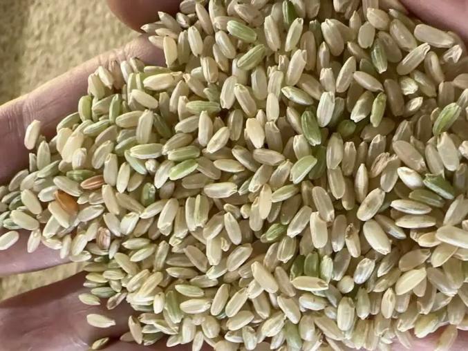 礱谷“脫外套”。干凈的稻谷進(jìn)入礱谷機(jī),將堅(jiān)硬的稻殼剝離,得到淡黃色的糙米。隨后再通過(guò)重力篩對(duì)糙米進(jìn)行進(jìn)一步篩選。
