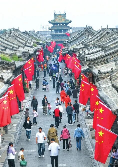 10月1日當(dāng)天,眾多游客在平遙古城游玩,盡情享受假日的美好時(shí)光。