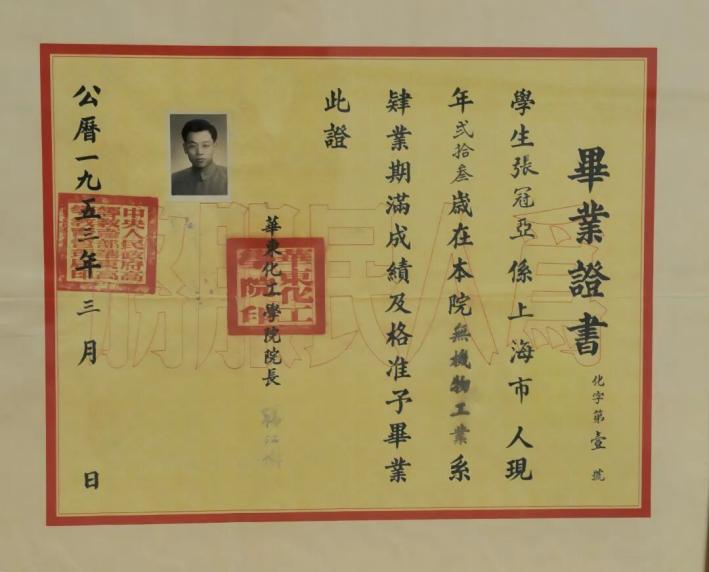 作為新中國第一所以化工特色聞名的高等學(xué)府,華理人以國家需求為導(dǎo)向,不畏艱險,勇挑重?fù)?dān)?!斑@是我校首張本科畢業(yè)證?!比A東理工大學(xué)檔案館副館長段義嚴(yán)指著一頁泛黃的紙告訴青年報·青春上海記者。1953年3月,因國家建設(shè)急需專業(yè)人才,11名無機(jī)物工學(xué)專業(yè)的學(xué)生提前半年畢業(yè),張冠亞幸運(yùn)地成為“化字第壹號”畢業(yè)證的擁有者。這批年輕人奔赴建設(shè)前線,成為新中國化工事業(yè)的中堅(jiān)力量。