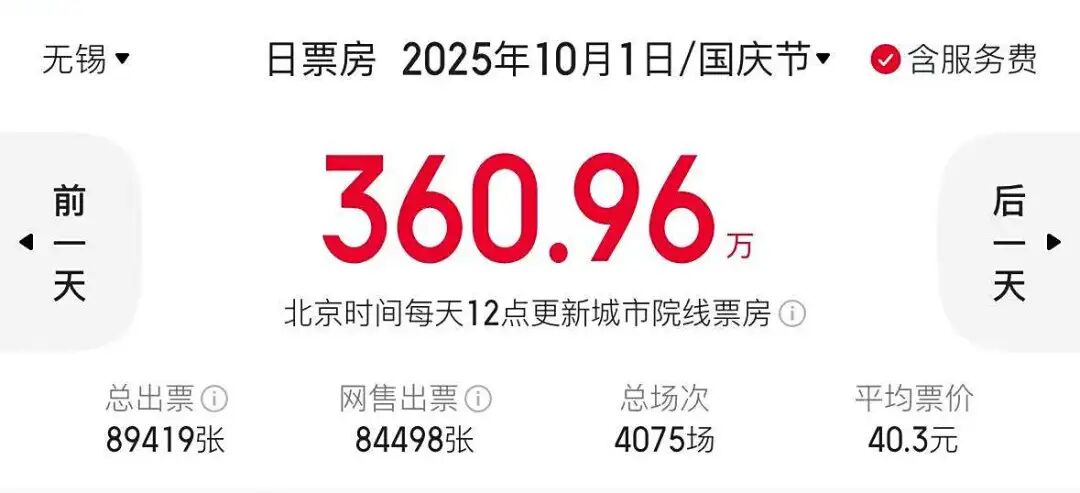 2025國慶檔:無錫電影市場火爆,全省第一全國前十