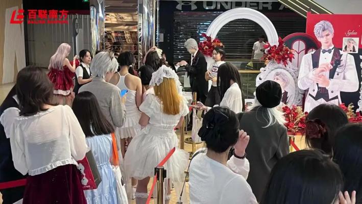 從橙萊姆簽售會(huì)到游戲《戀與深空》秦徹七夕主題商場(chǎng),小黃見(jiàn)證了粉絲的熱情:“有粉絲從蘇州甚至四川特意趕來(lái),想和漫畫(huà)作者合影?!边@讓百聯(lián)南方營(yíng)運(yùn)團(tuán)隊(duì)意識(shí)到,需要轉(zhuǎn)型的不只是引入的店鋪和售賣(mài)的商品,而是要通過(guò)活動(dòng)給顧客沉浸式的豐富體驗(yàn)。