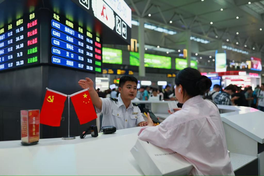 假日期間,鐵路部門(mén)不僅在運(yùn)力上做足保障,更在服務(wù)品質(zhì)和出行體驗(yàn)上用心用力。上海站、上海虹橋、上海松江站在各站區(qū)懸掛國(guó)旗,在電子顯示屏上播放國(guó)慶標(biāo)語(yǔ),營(yíng)造濃厚節(jié)日氛圍;增派工作人員和志愿力量,在電梯口、站臺(tái)、候車(chē)室等關(guān)鍵點(diǎn)位加強(qiáng)引導(dǎo)與幫扶;開(kāi)設(shè)上海虹橋站“網(wǎng)紅”售票員游園特色服務(wù)窗,新增兩處充電吧臺(tái),使站內(nèi)充電吧臺(tái)總數(shù)達(dá)到四處,滿足旅客便捷充電需求;聯(lián)合醫(yī)療單位在上海南站開(kāi)展義診活動(dòng),組織開(kāi)展國(guó)慶主題快閃活動(dòng)和“唐韻中秋”系列演出活動(dòng),為旅客增添節(jié)日溫馨與歡樂(lè)。國(guó)慶中秋假期期間客流將持續(xù)保持高位,鐵路部門(mén)提醒廣大旅客,具體列車(chē)開(kāi)行情況及服務(wù)信息,請(qǐng)關(guān)注鐵路12306客服網(wǎng)站和車(chē)站公告,合理安排行程,以免耽誤出行。本文僅代表作者觀點(diǎn),版權(quán)歸原創(chuàng)者所有,如需轉(zhuǎn)載請(qǐng)?jiān)谖闹凶⒚鱽?lái)源及作者名字。