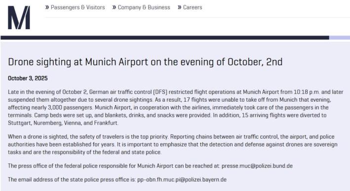 突發(fā)!德國慕尼黑機場因無人機事件全面停航,3000名乘客受影響