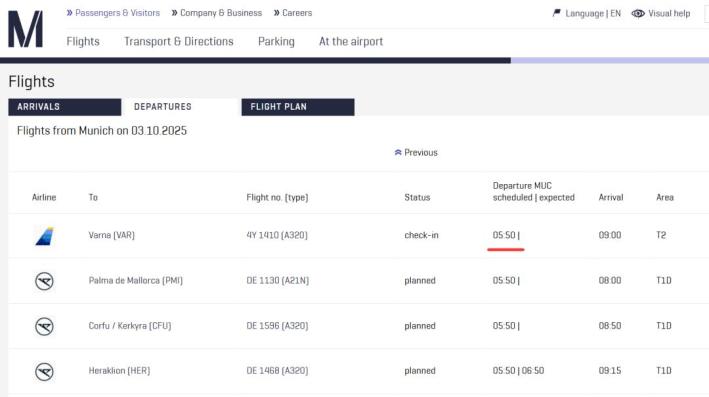 Flightradar24稱,機場預計關閉至當地時間3日早上2:59或4:49。慕尼黑機場網站顯示,首個進港航班預計5:25抵達,首個出港航班計劃5:50起飛。