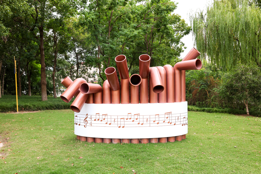 漫步在上海閔行文化公園,觀者不僅能欣賞到知名藝術(shù)家的精彩雕塑作品,還能感受到雕塑藝術(shù)與在地科創(chuàng)文化、音樂氛圍的深度對(duì)話?!冻鞘袇f(xié)奏》用不銹鋼管陣模擬樂器旋律,底座嵌入《青春閔行》樂譜符號(hào),奏響城市節(jié)奏;《途兔》以航天科幻主題演繹玉兔形象,契合閔行作為上海科創(chuàng)中心重要承載區(qū)的發(fā)展定位;《綻放》以上海市花白玉蘭為意象,傳遞城市開放包容的精神特質(zhì),也與閔行文化公園內(nèi)千余株玉蘭相互映襯。這些作品不僅點(diǎn)綴了公園景觀,更成為閔行文化身份的視覺載體,引導(dǎo)市民在漫步中思考現(xiàn)代城市的可持續(xù)發(fā)展路徑。