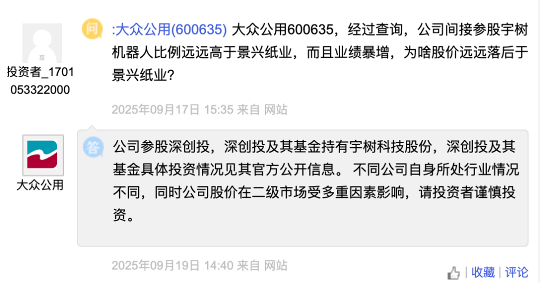 消息層面,此前公司在互動(dòng)平臺(tái)回復(fù)投資者時(shí)表示,公司參股深創(chuàng)投,而深創(chuàng)投及其基金持有宇樹科技股份。大眾公用半年報(bào)顯示,公司持有深創(chuàng)投10.80%的股權(quán)。