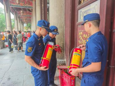 剛走進(jìn)島上的蘇州灣老街,就能看到一群“藍(lán)朋友”。他們在做好執(zhí)勤備戰(zhàn)工作的同時,還走街串巷宣傳消防安全知識。他們守護(hù)著煙火安全,你只管盡情逛吃。