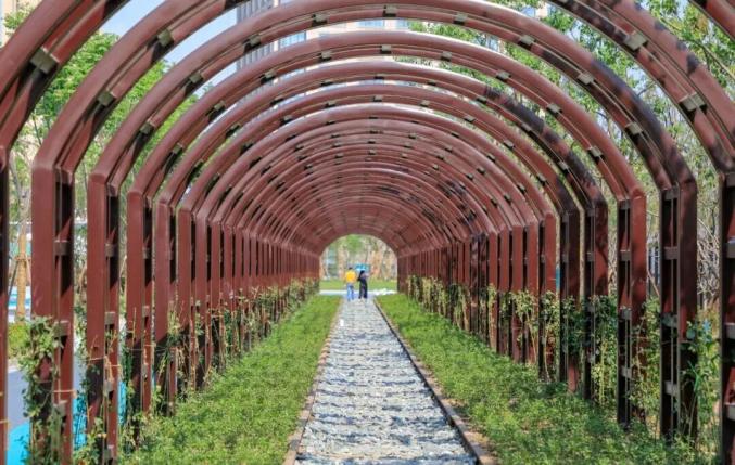 南門庫公園的前身是工業(yè)遺存,經(jīng)蜀山區(qū)匠心改造,成為融合生態(tài)、文化與休閑運動的城市打卡空間。昔日龍門吊依然矗立,粗壯的螺栓與斑駁的枕木訴說著一代人的奮斗歲月,留存厚重的城市記憶。老鐵路線化為被鮮花點綴的“時光隧道”,漫步其間,花香浮動,仿佛踏入絢爛的光陰故事。