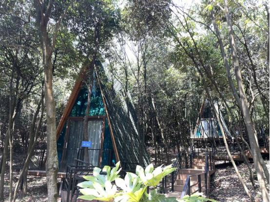 森林木屋隱匿在林間,推窗見綠,夜晚伴著蟲鳴聲入睡。