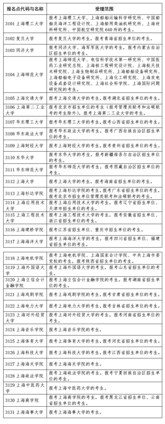 四、上海市2026年全國碩士研究生招生考試考生網(wǎng)上確認報名點安排表