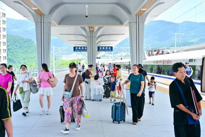 對于前往武隆旅游的游客來說,動車出行是首選。從重慶東站出發(fā),最快約40分鐘便可抵達武隆南站,比以往公路交通節(jié)省大量時間。