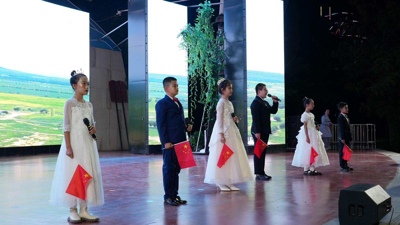 表演過程中還穿插了詩朗誦《山河不會忘記》《這盛世如你所愿》以及歌曲《最美的花季》,孩子們用稚嫩卻飽含深情的聲音表達(dá)了對歷史的回望和對當(dāng)今中國的贊美。
