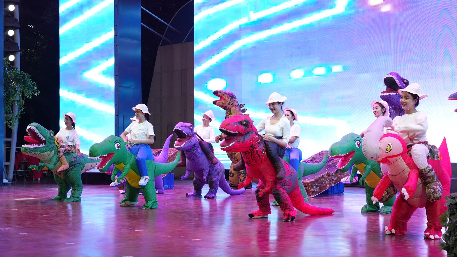 《恐龍足跡之謎》兒童劇講述了樂樂和朵朵借助“恐龍呼叫器”與史前恐龍相遇,在劉家峽白堊紀(jì)場景中遭遇危險(xiǎn)。后來在黃河爺爺?shù)囊龑?dǎo)下,眾人用“化石魔法”避險(xiǎn),并體驗(yàn)了化石的形成過程,最終他們被邀請成為地球記憶守護(hù)者。穿著恐龍服的演員與臺下的兒童積極互動(dòng),將演出氣氛推向了高潮。