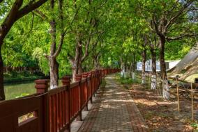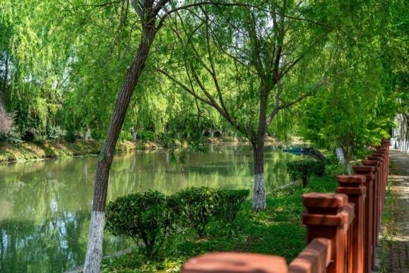 春日里,老千步?jīng)芫従徚魈剩瑑砂洞沽娜f(wàn)條綠絲絳探入碧波,與春花相互映襯,趣味十足。