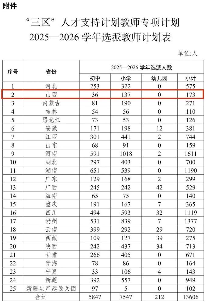 原標題:《山西173人!2025年“三區(qū)”人才支持計劃教師專項計劃來啦》