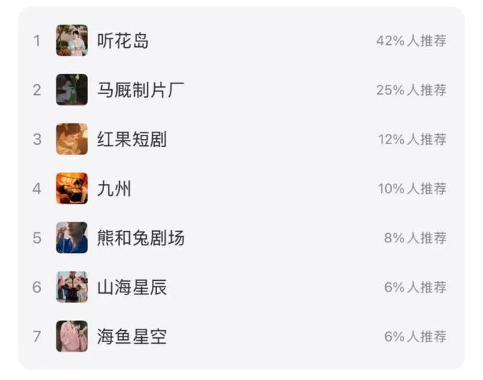 聽花島靠工業(yè)化制作,熊和兔靠后期和獨(dú)特調(diào)性,馬廄靠精彩故事和精湛鏡頭,西安等閑靠時(shí)髦質(zhì)感,海魚星空靠全面均衡,于今無量靠女性議題,百川靠IP改編。每一家都在自己的領(lǐng)域建立了競爭優(yōu)勢。短劇廠牌化,實(shí)際上就是短劇精品化的另一種體現(xiàn)。