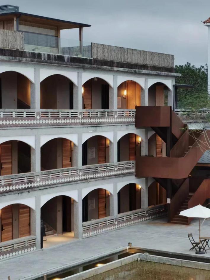 有一間由舊茶廠改造而成的民宿,斑駁的圍墻訴說著它曾經(jīng)的故事。