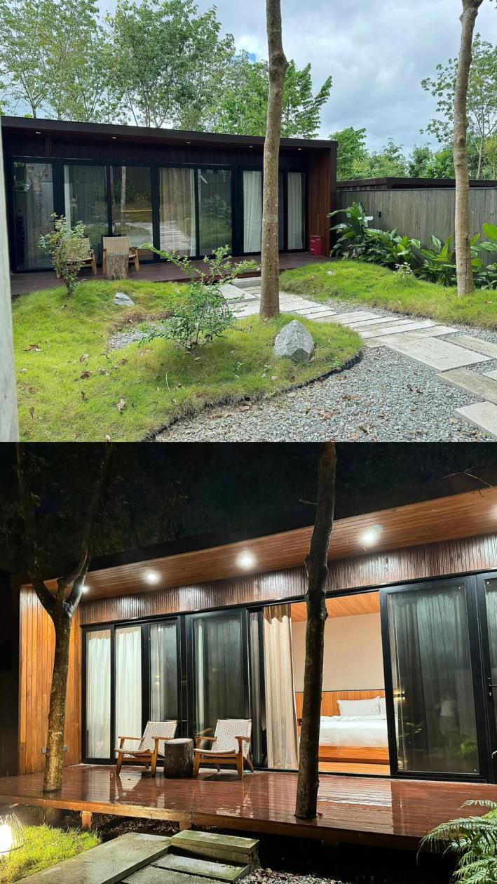 整個園區(qū)內(nèi)草木繁茂,山景房搭配小庭院,私密性和舒適性兼具。進出都有接駁車接送,蟬鳴鳥語相伴,疲憊、“班味”一掃而空。