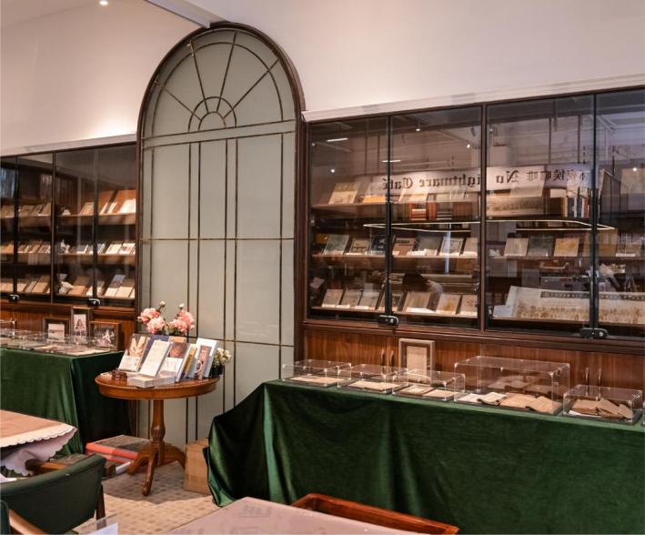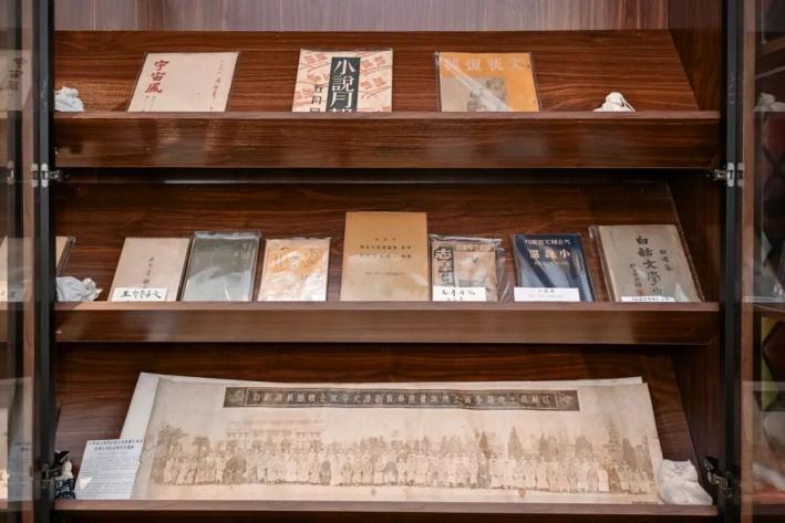 櫥窗里的近現(xiàn)代文獻(xiàn)與老照片是書(shū)局的常設(shè)近現(xiàn)代文獻(xiàn)展。文獻(xiàn)種類(lèi)涵蓋文學(xué)、歷史、藝術(shù)等領(lǐng)域,有民國(guó)時(shí)期魯迅著作初版本《吶喊》《野草》等,也有郁達(dá)夫《沉淪》、呂思勉《中國(guó)秦漢史》初版本,還有1934年以南橋沈家花園為背景的老照片。