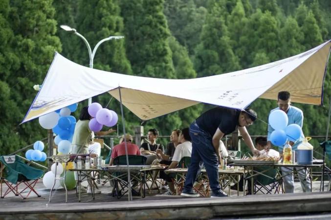 支起帳篷,開啟山野美夢;點亮幕布,享受星空影院。滋滋冒油的烤盤喚醒味蕾,在撈風營地里,將茶香揉進晚風里。