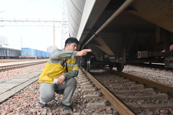 “6道信息匹配正確,核對無誤,開始檢查車輛?!崩羁赦x熟練地進行著貨檢作業(yè)。李可鈞今年54歲,在貨檢員崗位上已經(jīng)工作了32年。他說:“列車發(fā)出前,我都會反復(fù)檢查確認(rèn),生怕哪個環(huán)節(jié)出錯!”在他看來,細(xì)心謹(jǐn)慎是干好貨檢工作的關(guān)鍵。