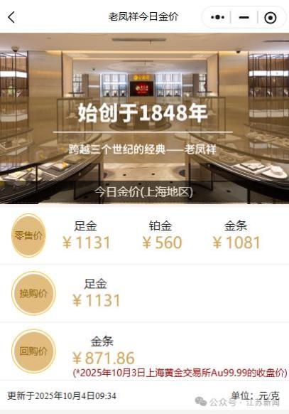 10月4日,國內(nèi)多個金飾品牌金飾克價再創(chuàng)新高。