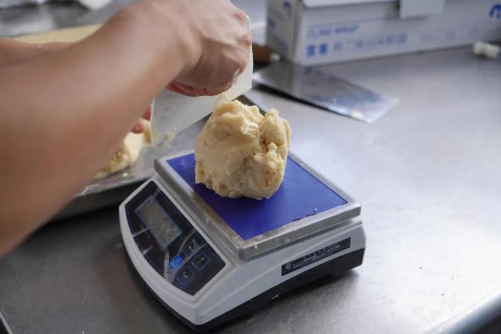 第3步:把面團(tuán)切成若干均勻的小劑子,搟平備用,當(dāng)作月餅皮。