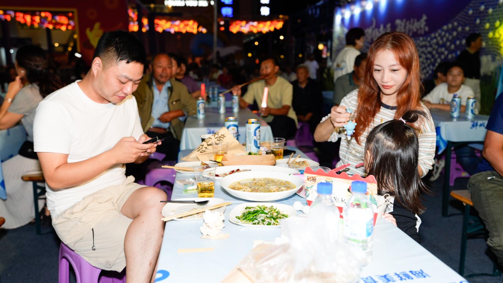 活動現(xiàn)場重點推薦的8道如東海鮮名菜各有特色。“文蛤餅”外皮酥脆,內(nèi)部鮮嫩,完整保留了“天下第一鮮”的原汁原味;“鮑魚狼山雞”巧妙地將山珍與海味融合在一起;“湯泡本港鮮泥螺”采用原湯簡單烹制,鎖住了泥螺的彈嫩口感;“栟茶煨竹蟶”以文火慢燉出鮮香濃郁的湯汁……這些具有如東獨特風(fēng)味的“鮮味美食”,不僅是本地人的味覺記憶,更是江蘇美食文化的亮麗名片。來自南京的游客李晴笑著說:“我在抖音上看到這個活動,專門從南京過來吃海鮮,套餐里有清蒸帶魚和竹蟶湯,味道特別鮮美,我很喜歡!”