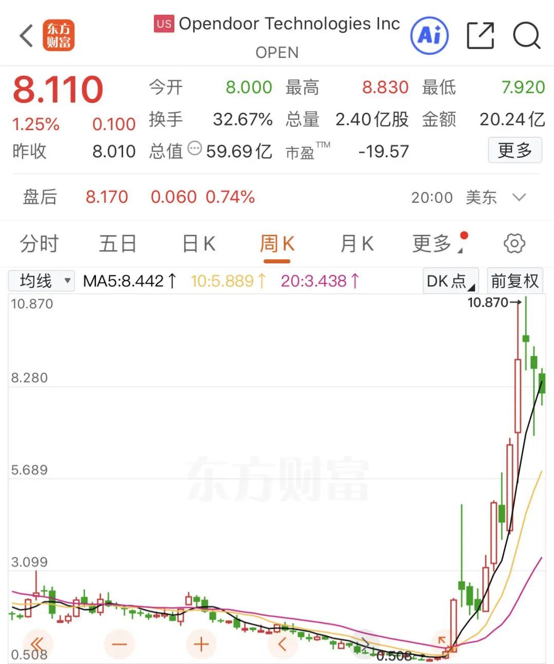 納斯達(dá)克過去3個(gè)月最引人注目的妖股,是開門科技(OpenDoor Technologies,代碼:OPEN.O)。