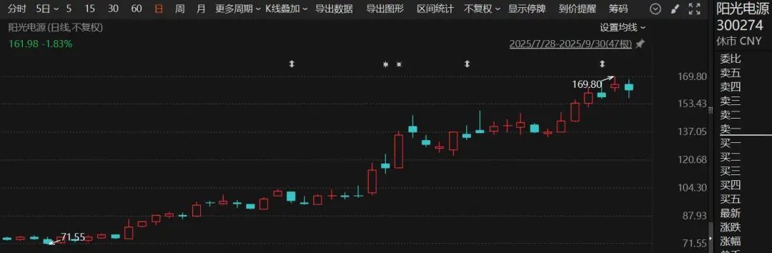 近日,陽(yáng)光電源在二級(jí)市場(chǎng)表現(xiàn)出色,股價(jià)持續(xù)攀升,9 月份累計(jì)漲幅超 62%,總市值突破 3300 億元。