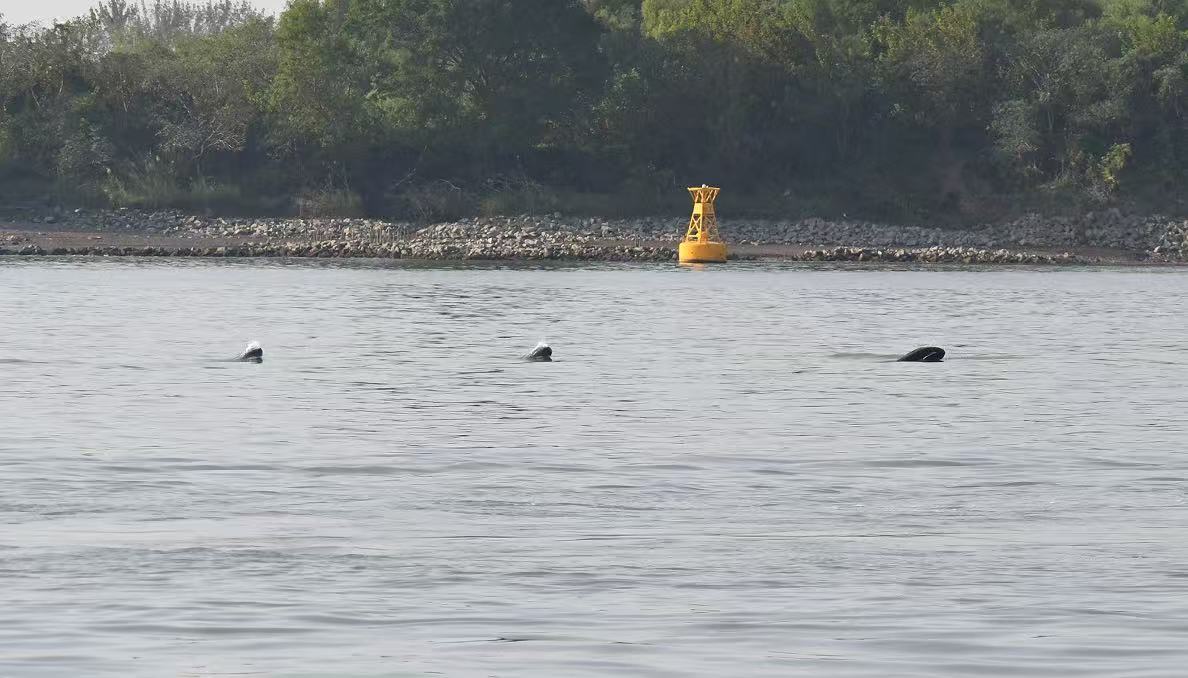 在三江營(yíng)水域,科考人員看到十多頭江豚并肩游動(dòng),時(shí)而下潛、時(shí)而上躍,動(dòng)作敏捷,攪起漣漪。
