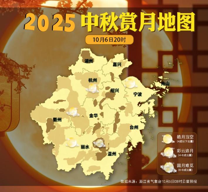 據(jù)浙江省氣象局消息,中秋當天,全省大部地區(qū)能欣賞到皓月當空或彩云追月的美景。晚上氣溫也降下來了,大家可以好好安排活動啦~