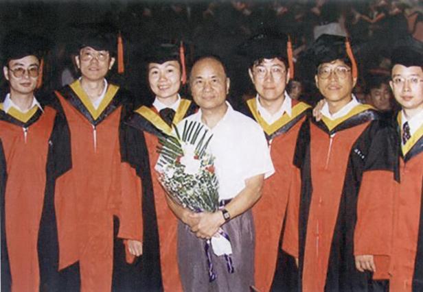 1996年倪維斗(中)與弟子們合影