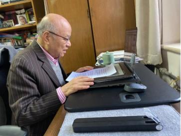 倪維斗為學(xué)生線上授課