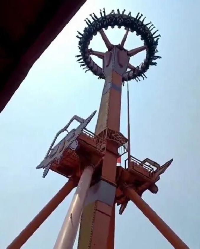 2025年4月28日,浙江杭州一游樂園的大擺錘項(xiàng)目突然懸停。據(jù)游客反映,他們?cè)诟呖盏沽⒘思s1分鐘,致使頭部充血不適。