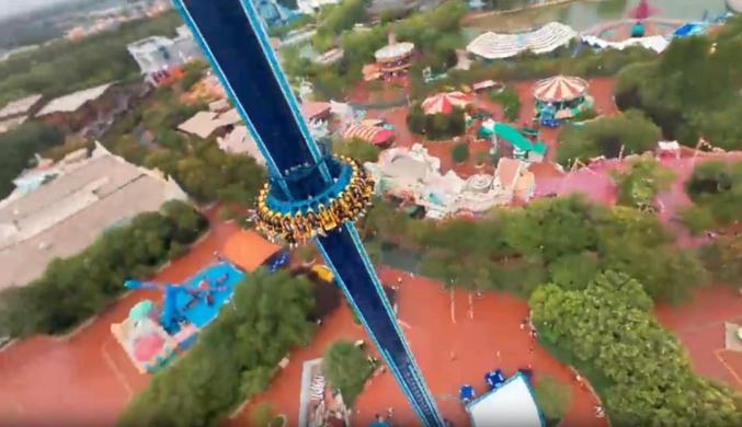 近日,有網(wǎng)友發(fā)布視頻稱,鄭州方特歡樂世界的跳樓機(jī)載人上升后,在高空懸停了數(shù)分鐘。
