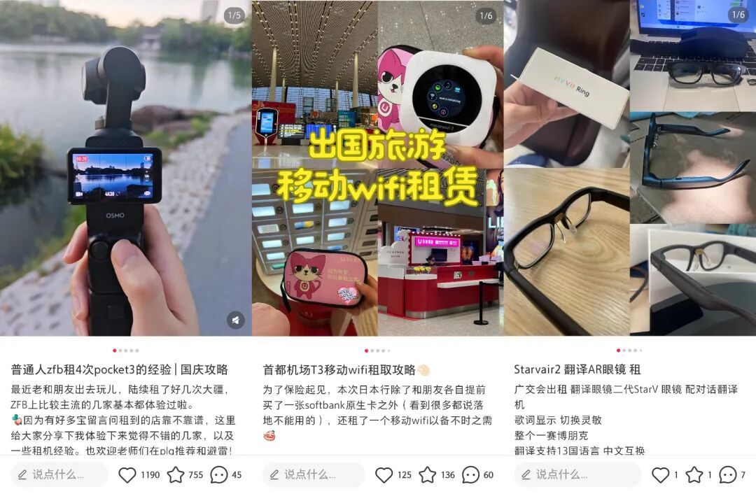 用來拍攝旅行vlog的大疆Pocket 3,可能是花99元租來用3天的;5套風(fēng)格不同的民族風(fēng)服裝,租金只需100元;新出境三件套——隨身Wi-Fi、翻譯機(jī)、國際充電插頭,說不定也是花百元租來的。